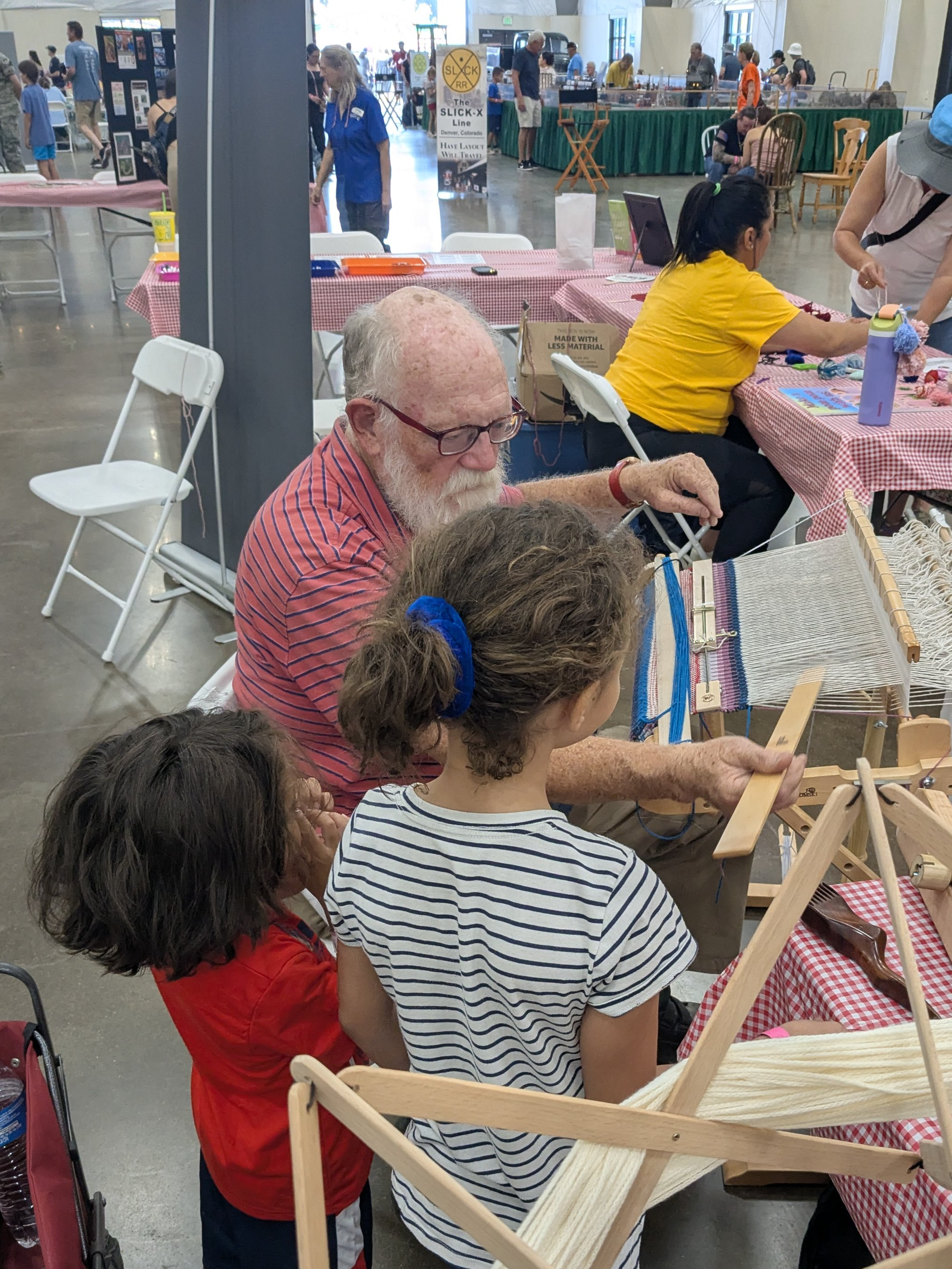 RMWG members do outreach events throughout the year to share our love of fiber. We educate the public about the fiber arts at community events through weaving, spinning, knitting and other fiber arts demonstrations.